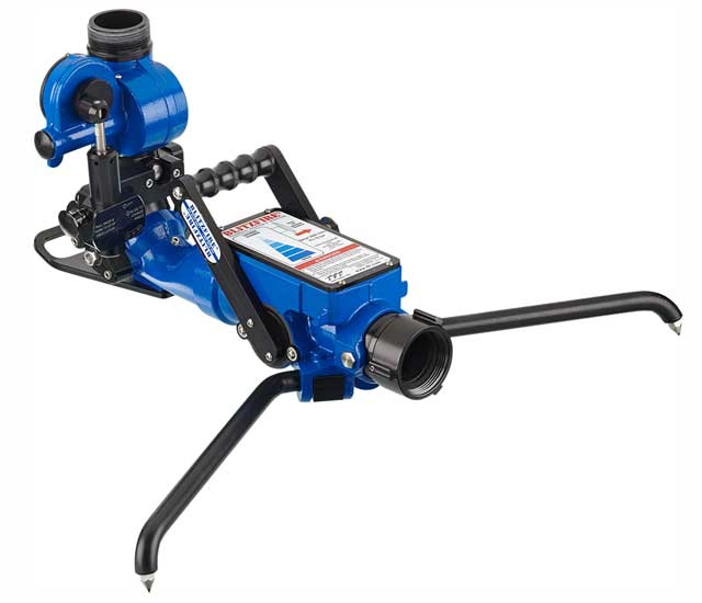 The BlitzFire® is an adaptable, high-performance portable water monitor, ideal for fire crews facing limited manpower or challenging firefighting conditions. Delivering up to 500 GPM (2000 LPM) with full control over water flow and attack angles, the BlitzFire® can be used in either attended or unattended mode. Its exclusive safety shutoff valve ensures operation under the safest possible conditions, while its compatibility with various nozzles and foam systems adds versatility to its use. Whether you need to adjust your stream angle to reach high or low locations, the BlitzFire® is a reliable, efficient solution that maximizes fireground capabilities.