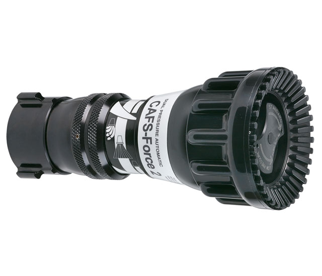 •   The CAFS Force Series of Nozzles are ideally suited for compressed air foam applications when maximum reach, quality foam, and a wide protective foam pattern are required for interior firefighting operations. As the only automatic CAFS nozzles made, these constant pressure variable flow nozzles help minimize unsafe slug flow, as well as maximizing stream performance under changing fire ground conditions.