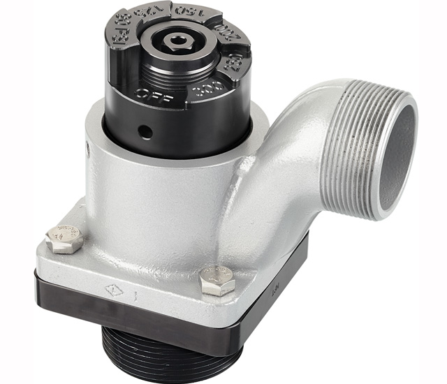 RELIEF VALVE W/ 2.5 NPTM ADAPTER W/ 2.0 NPTM EXIT THREADS A18 Series - PRESSURE RELIEF VALVE - TFT's Pressure Relief Valve operates in an adjustment range from 90 to 300 psi (6 to 21 bar) with easy to see increments of 90, 125, 150, 200, 250, and 300 psi. Each pressure relief valve includes an OFF position. The pressure relief valve is NFPA 1900 compliant. The aluminum casting is hardcoat anodized, and TFT-powder coat finished inside and out for maximum corrosion protection. For direct use on pump flanges, the TFT pressure relief valve works with Darley, Waterous, or Hale bolt hole patterns. Relief valves are available with 2-inch male pipe thread, 2.5-inch male NH thread, or 2.5-inch Victaulic® connection on the discharge spout. Available adapters include 2.5" and 3" NPT male and female threaded inlets for mounting the TFT pressure relief valve to plumbing. Add 1.5 inches to depth for models A1850 and A1860