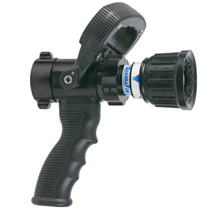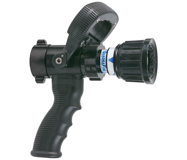 •   The Quadrafog Series of selectable gallonage 1 in and 1.5 in nozzles are designed for simple operation and rugged durability in wildland or structural firefighting operations. Available in tip only configurations or with a stainless steel ball shutoff and optional color coded nylon pistol grip, these series incorporate lightweight aluminum construction, reflective labeling, and stainless steel components with a protective front rubber bumper.