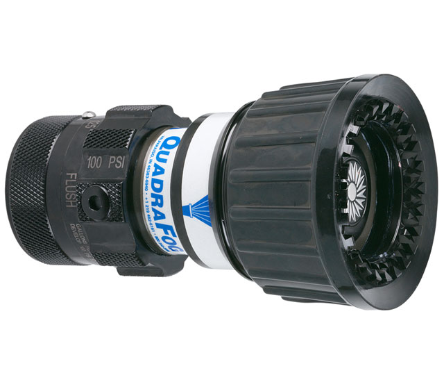 • The 1 in Quadrafog Series, with its fixed cut fog tooth pattern is ideal for wildfire operations or booster line operations. The 1.5in Quadrafog Series are available with either TFTs uniquely cut style of fixed fog teeth, or our popular stainless steel spinning teeth to provide a wide protective fog pattern. All models also accept either a low or multi-expansion foam aspiration attachment.