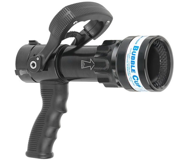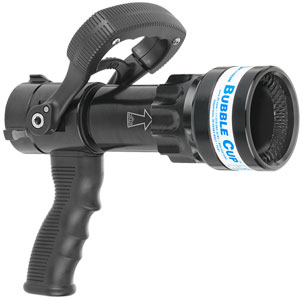 | •   The BubbleCup and QuadraCup are ideally suited to work with eductors, on-board foam proportioning systems, or even batch mixed foam solutions and can easily move from aspirated foam to a wide protective fog pattern. |