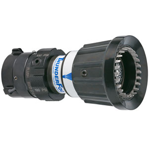 •   The Thunderfog Series of selectable gallonage 1½” and 2½” nozzles are designed for simple operation and rugged durability in structural and industrial firefighting operations. Available in tip only configurations or with a stainless steel ball shutoff and optional color coded nylon pistol grip, these series incorporate lightweight aluminum construction, reflective labeling, and stainless steel components with a protective front rubber bumper.
