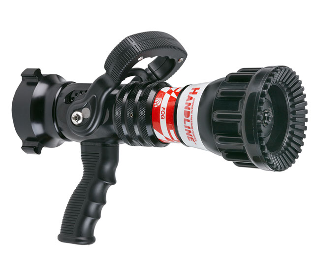 •   The full size Handline nozzle is available with 100, 75, or 55 psi operational pressure to meet any fire ground operational challenge. The high strength bonded rubber fog teeth provide a full filled pattern that pushes heat flame and smoke ahead and away from the firefighting team.