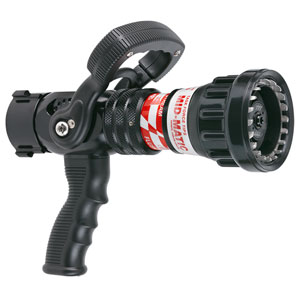 Weight: 6 lbs ( kg)Adjustable Pressure Choices: Available in 75, 80, and 100 PSI (5, 6, and 7 Bar) for accurate flow settingsFlow Range: Delivers between 25-200 GPM (100-750 LPM), ideal for mid-range applicationsHose Compatibility: Fits 1.5” to 2” (38-52 mm) hoses, available in NH, BSP, and BIC connectionsSlide Valve Control: Patented slide valve offers turbulence-free operation for smooth flow adjustmentsFog Pattern Teeth: Choose from molded rubber or metal spinning teeth for versatile fog patternsFlush Without Shutdown: Easily clear obstructions without stopping water flowGrip Options: Pistol grip configurations for enhanced controlColor & Safety Indicators: Black finish with optional flashover nozzle for advanced firefighting techniques |