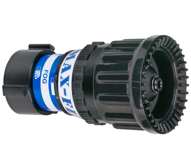 •   The Max Series Handline nozzles are available with 100/55psi dual pressure, or 100 or 80 psi pressure choices to meet any fire ground operational challenge. The high strength bonded rubber fog teeth provide a full filled pattern that pushes heat flame and smoke ahead and away from the firefighting team.