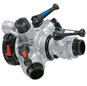 TFT's 3-Way Valved Manifold is a rugged manifold with three 2.5" (64 mm) valved discharge ports, each with a full 2.5" (64 mm) waterway. Maximum operating pressure is 300 psi (21 bar). Valve seats are field replaceable. Quarter turn valve handles operate with low force to move even under pressure. Automatic valve lock keeps its position while flowing at partial openings. Folding handles minimize storage space. Aluminum casting is hardcoat anodized and silver TFT Powder Coat finish inside and out for maximum corrosion protection. Optional adjustable pressure relief valve. Optional rugged .75" (19 mm) air bleed valve to quickly bleed air from the lines or to drain water from the valve housing. Contact TFT customer service for configurations not shown.
