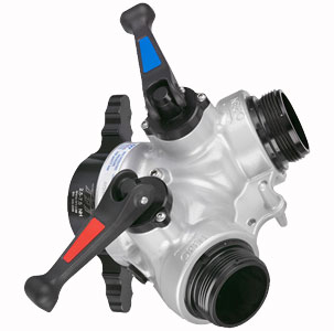 • The Water Thief incorporates TFT’s unique aluminum half-ball design providing up to 500gpm efficiently through its single valved 2 ½” discharge and provides a full 2” waterway through the dual valved 1 ½” discharges. Color coded super tough nylon folding handles are standard and these lightweight hard anodized and powder coated appliances can be ordered with your choice of inlet and outlet couplings.