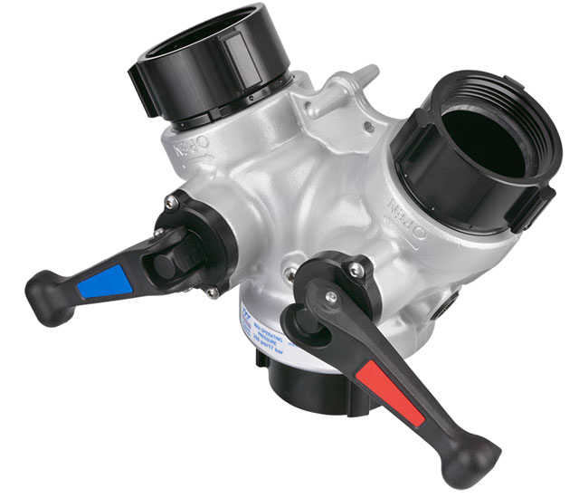 • The Water Thief incorporates TFT’s unique aluminum half-ball design providing up to 500gpm efficiently through its single valved 2 ½” discharge and provides a full 2” waterway through the dual valved 1 ½” discharges. Color coded super tough nylon folding handles are standard and these lightweight hard anodized and powder coated appliances can be ordered with your choice of inlet and outlet couplings. |