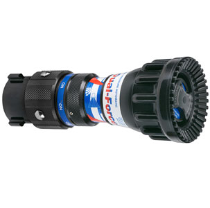 • The full size Dual Force Handline nozzle is available with 100/55psi or 75/45psi operational pressure choices to meet any fire ground operational challenge. The high strength bonded rubber fog teeth provide a full filled pattern that pushes heat flame and smoke ahead and away from the firefighting team.