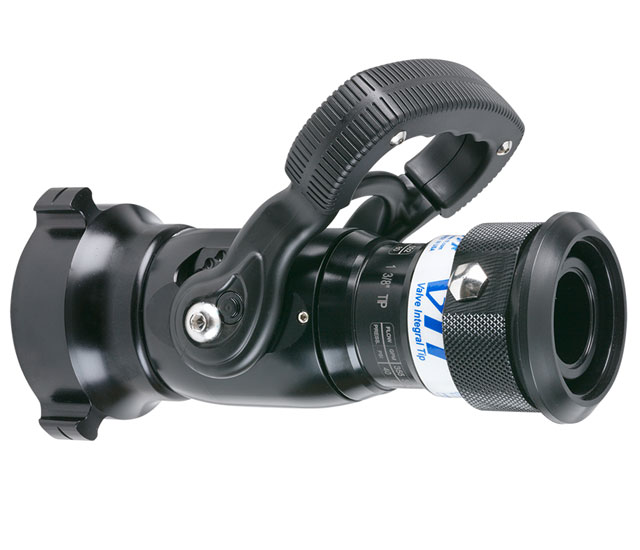 Separate ball-type shutoff valve for use with tip only nozzles. Use the valve as a smooth bore at the selected outlet diameter. Six detent flow positions. Colored handle covers available. 2.5" NH (65 mm) rocker lug full-time swivel inlet coupling and 1.5" NH (38 mm) male outlet standard. All lightweight materials are used.
