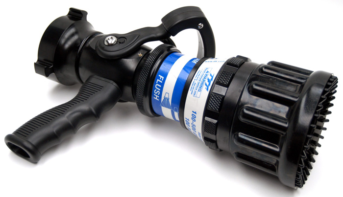 • The Max Series Handline nozzles are available with 100/55psi dual pressure, or 100 or 80 psi pressure choices to meet any fire ground operational challenge. The high strength bonded rubber fog teeth provide a full filled pattern that pushes heat flame and smoke ahead and away from the firefighting team. |