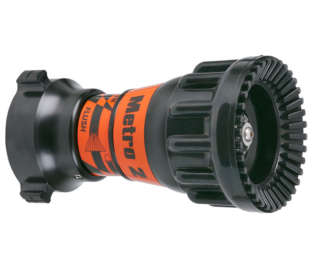 •   The METRO series of fixed gallonage nozzles are the perfect choice to help simplify complex fireground hydraulic calculations. All METRO 1, excluding the ME1-TO and ME1-TOS, comes with a standard inlet debris screen, quick straight stream to fog pattern control, and reflective Scotchlite labeling.