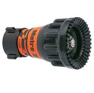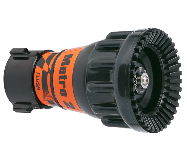 •   The METRO series of fixed gallonage nozzles are the perfect choice to help simplify complex fireground hydraulic calculations. All METRO 1, excluding the ME1-TO and ME1-TOS, comes with a standard inlet debris screen, quick straight stream to fog pattern control, and reflective Scotchlite labeling.