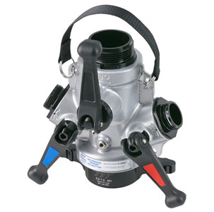 • The Water Thief incorporates TFT’s unique aluminum half-ball design providing up to 500gpm efficiently through its single valved 2 ½” discharge and provides a full 2” waterway through the dual valved 1 ½” discharges. Color coded super tough nylon folding handles are standard and these lightweight hard anodized and powder coated appliances can be ordered with your choice of inlet and outlet couplings. |