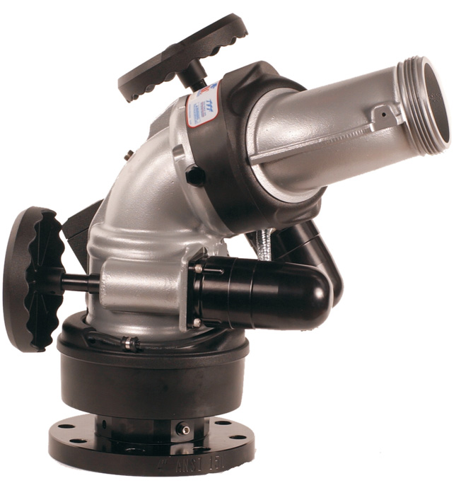 •   TFT Monsoon Manual Monitor offers efficient flow performance up to 2000gpm with only 15psi loss, provides full 360 degree rotational movement, and is available with 3” or 4” ANSI 150 flanges, 3”or 4” NPT thread, or with extended flange inlets to eliminate rotational clearance issues. All models are FM approved, are standard with corrosion resistant powder coating, and come with your choice of hand wheel and tiller bar operational controls.