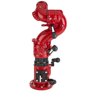 •   TFT Typhoon Manual Monitor offers efficient flow performance up to 1500gpm, provides full 360 degree rotational movement, and is available with 3” or 4” ANSI 150 flanges, 3”or 4” NPT thread, or with TFT’s exclusive Extend-A-Gun connection. All models are standard with corrosion resistant powder coating, come with your choice of hand wheel and tiller bar operational controls, and are the ideal choice for high flow fixed industrial and pumper applications.