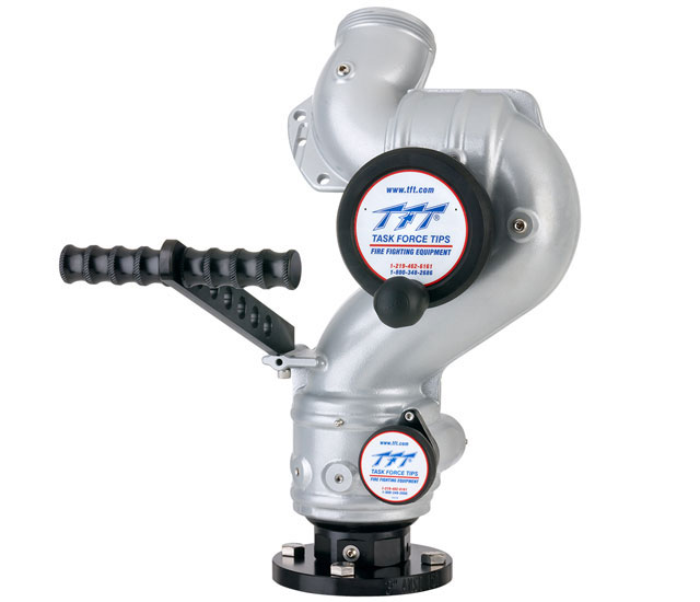 •   TFT Typhoon Manual Monitor offers efficient flow performance up to 1500gpm, provides full 360 degree rotational movement, and is available with 3” or 4” ANSI 150 flanges, 3”or 4” NPT thread, or with TFT’s exclusive Extend-A-Gun connection. All models are standard with corrosion resistant powder coating, come with your choice of hand wheel and tiller bar operational controls, and are the ideal choice for high flow fixed industrial and pumper applications.