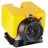 FLOATING LOW LEVEL STRAINER JET SIPHON Flotation device allows TFT high volume low-level strainer to collect clean water from ponds, lakes and rivers. The strainer inlet, made of hard anodized and powder-coated aluminum, hangs 18" (45.7 cm) below water level to avoid sucking surface air and bottom debris. Capable of supporting up to 30 ft (9 m) of hose, the strainer extends well beyond safety ledges of residential ponds. The clog-resistant stainless steel filter has over twice as much flow area as a 6" hose. This keeps friction loss down to 0.5 psi (0.03 bar) at 1500 gpm (5678 l/min) and reduces the potential for air vortexes to form. Oversized sealed ball pivot allows 45° range of hose angle without constricting the flow path. Jet Siphon substantially increases suction lift capability and is also useful for tank shuttle, pump priming and dewatering with no need for a trash pump. Jet Siphon has 1.5" (38 mm) female hose threaded coupling that pivots freely in any direction to avoid hose kinks. Rugged polyethylene float is yellow for high visibility and nests compactly over the strainer for minimal storage space. Float removal is not necessary for low level use, although a tethered latching hinge pin allows the float to be removed or installed instantly if desired.